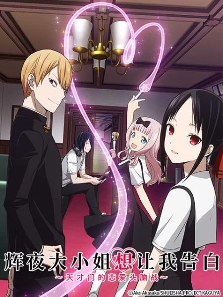 电视动画片《辉夜大小姐想让我告白~天才们的恋爱头脑战~》改编自赤坂明创作的同名漫画作品,于2019年播出,全12集。作品讲述了秀才聚集的秀知院学园,学生会副会长·四宫辉夜与会长·白银御行原本应该是彼此受到了对方吸引,但过半年了却仍然什么事情也没发生。最麻烦的是这两个自尊心超强、无法坦率的家伙,居然开始想着要“设法让对方向自己告白”?直到恋情明朗之前都会很欢乐的故事,充满新鲜感的“斗智”爱情喜剧,就此开战。