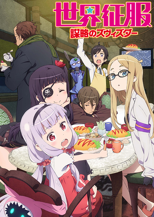 《世界征服~谋略之星~》是由A-1 Pictures制作的原创电视动画,于2014年播出,全12话。作品讲述了离家出走的地纹明日汰,在路上遇见了骑着装有辅助轮脚踏车的幼女星宫凯特,被夺走了包子之后顺带的被强迫加入了“星”。成为战斗员的明日汰,在星宫凯特的命令下,朝着不明的目标前进。此时,陆上自卫队正在与“星”的巨大兵器交战中,而明日汰在公园里发现凯特掉落的玩偶后,就被自卫队的战车给包围了起来。这时,“星”的成员纷纷出现在他的面前…