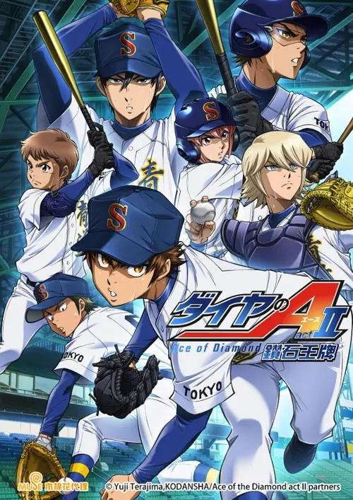 电视动画《钻石王牌 actⅡ》改编自寺岛裕二创作的同名漫画,于2019年播出,全52话。作品讲述了升上二年级的泽村荣纯,终于拿下了春季甲子园的入场资格!目标仅仅是全国制霸!!青道高中棒球社的极速进击即将开始。