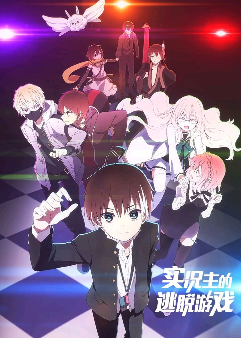 电视动画《实况主的逃脱游戏【直播中】》改编自おそら著作的同名漫画,于2019年播出,全12话。作品讲述了《中之人基因组》,在游戏实况者之间成为话题的神秘免费游戏。通称,失踪游戏。据称,在即将通关之际就消失的玩家源源不断。失踪的游戏实况者们被人为地与外界隔离,集合到某座岛上。在那里,他们所接受的命令,是通过必须在现实中通关的各种游戏,来达成一亿的播放数。8名人气实况者所带来的,以能否回归为赌注的真实游戏《中之人基因组》的实况开始了——