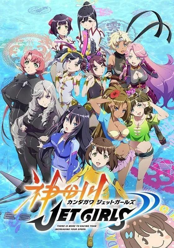 原创电视动画《神田川JET GIRLS》是同名多媒体企划的一环,于2019年播出,全12集。故事发生在操作赛艇的“推进手”与使用水枪攻击对手的“射手”两人一组乘坐摩托赛艇,横越水面的运动“喷射竞速”成为主流的世界。母亲是传说中的推进手,自己也梦想成为喷射竞速选手的波黄凛,离开故乡所在的岛,来到了东京浅草。她在那里遇到了冰山美少女苍井美沙,两人成为了搭档。她们在与对手们展开竞争的同时,也逐渐加深着彼此的牵绊。