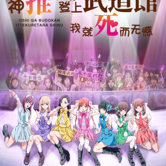 电视动画《神推偶像登上武道馆我就死而无憾》改编自平尾合利著作的同名漫画作品,于2020年播出,全12集。故事发生在风景秀丽的冈山县,绘里飘是生活在这里的一名普通女性,然而,她还有着另一重身份——狂热偶像宅。绘里飘所支持的,是偶像团体“Cham Jam”里名为市井舞菜的成员,绘里飘是只应援舞菜一人的唯粉,她将自己所有的收入都贡献给了舞菜,工作之余的所有时间经历也都投注到了舞菜的身上。偶像团体里雷打不动的C位五十岚玲央、聪慧可靠冷静过人的松山空音、身材曼妙成熟温柔的伯方真妃,除了舞菜外,偶像团体里还活跃着这些个性迥异的美少女们,她们每个人都和她们各自的粉丝结下了深厚的友谊。