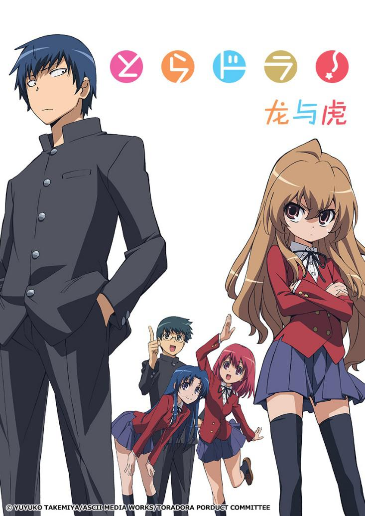 电视动画《龙与虎》改编自日本轻小说家竹宫悠由子原作的同名轻小说,于2008年首播,共25话。曾获选为2009年第十三届日本文部省文化厅媒体艺术节动画部门推荐的作品。本作讲述了一段感人至深,又令人深思的校园爱情故事,带给读者关于友情、爱情和亲情真正意义的感悟。