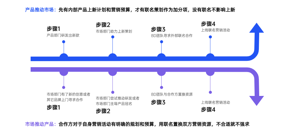 很多人说,瑞幸的联名怎么就突然间火遍大江南北,大街小巷了呢?其实这要归功于瑞幸内部的“平行协同”策略,即:产品推动市场,市场推动产品。
