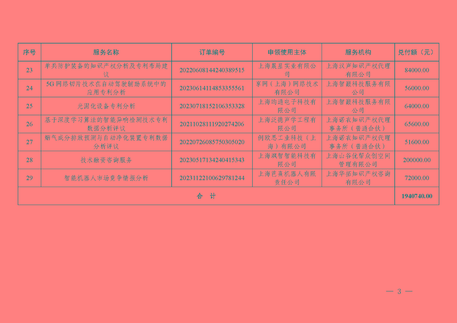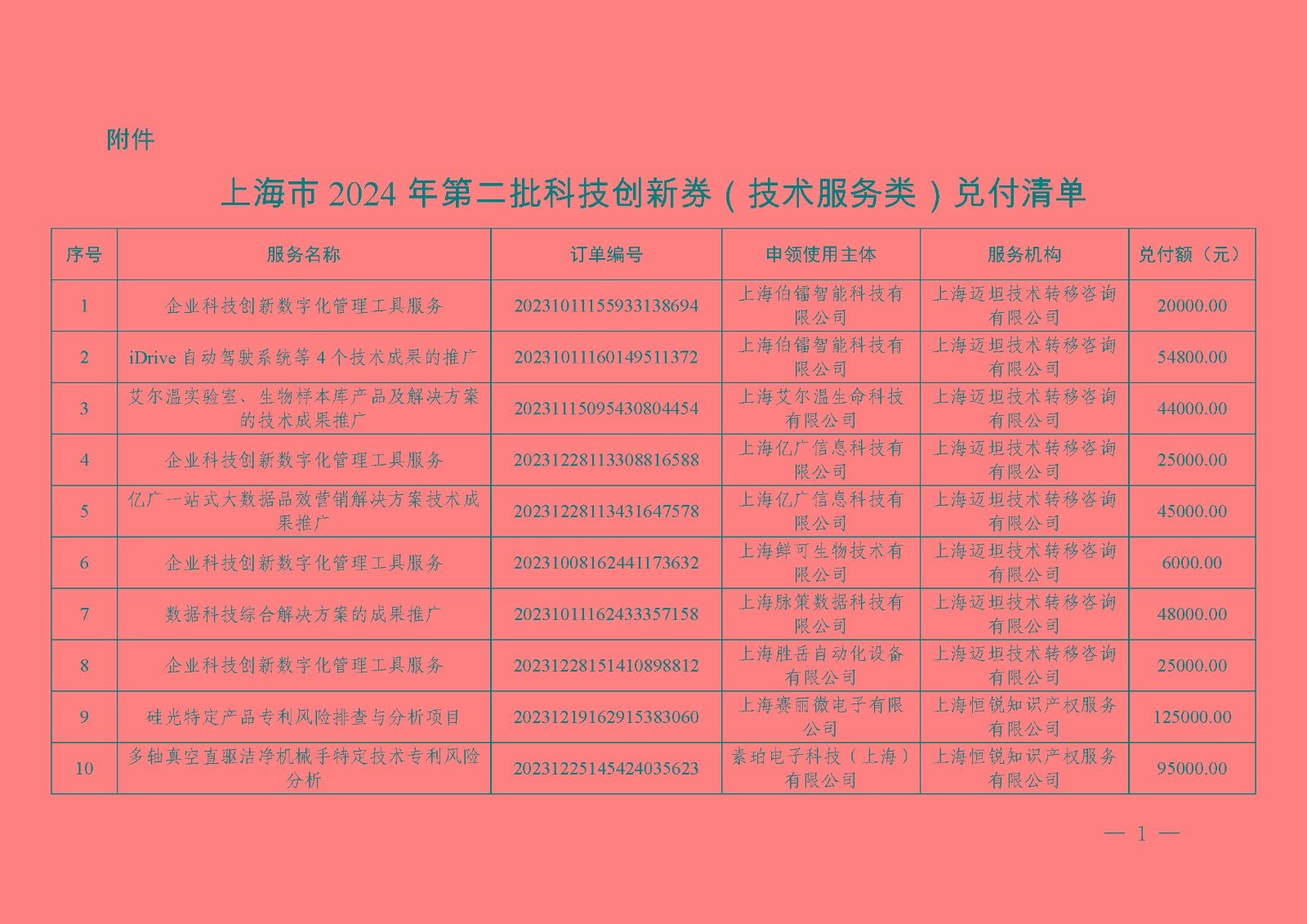 为进一步降低中小微企业和创业团队创新创业成本,激发创新活力,根据《上海市科技创新券管理办法》(沪科规〔2022〕11号)要求,经兑付受理、审核和社会公示,确定对“上海迈坦技术转移咨询有限公司”等符合科技创新券兑付条件的服务机构进行兑付,经费总额1,940,740元。请各有关单位规范和加强经费管理和使用,切实提高财政资金使用效益。